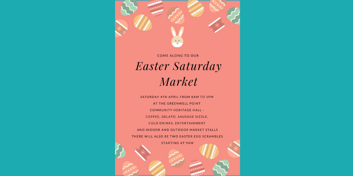 Come along to the market on Easter Saturday from 8am on 4th April. We will have a variety of indoor and outdoor stalls, sausage sizzle and cold drinks, coffee, gelato, entertainment and two Easter Egg lolly scrambles.