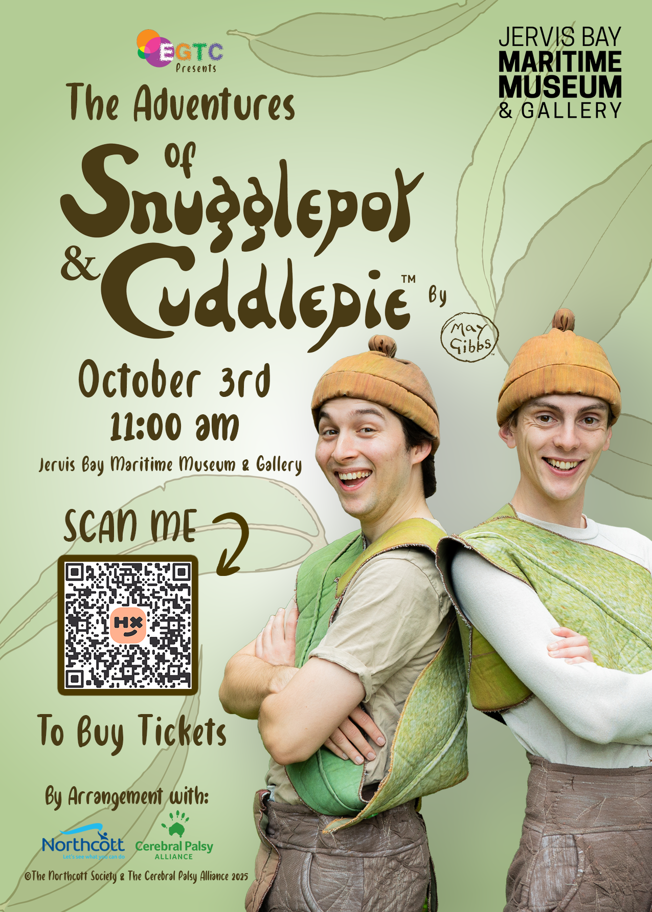 The Eaton Gorge Theatre Company (EGTC) are proud to present an outdoor performance of May Gibbs’ Adventures of Snugglepot and Cuddlepie at The Jervis Bay Maritime Museum on Fri 3 October 2025 at 11 am